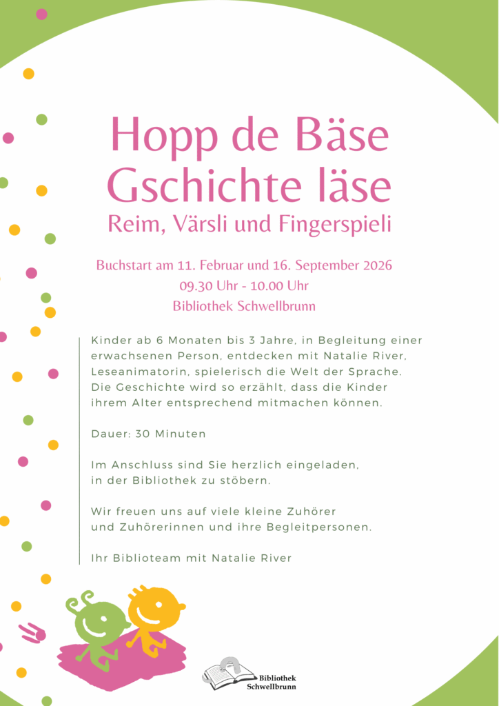Hopp de Bäse — Gschichte läse von Bibliothek Schwellbrunn 26 26 people viewed this event. Download Flyer Für Veranstaltung registrieren Um dich für diese Veranstaltung zu registrieren, besuche den folgenden Link: Warning: Undefined property: stdClass::$url in /home/httpd/vhosts/biblioapp.ch/httpdocs/wp-content/plugins/wp-event-manager/templates/event-registration-url.php on line 4 → Datum und Uhrzeit 16. September 2026 , 09:30 bis 16. September 2026 , 10:00 Ort Bibliothek Schwellbrunn Share With Friends Facebook Twitter LinkedIn Xing Pinterest